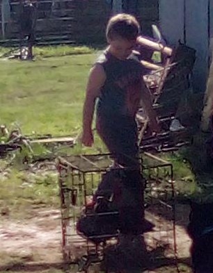 2nd grade boy walking by chicken cage on Ag Day 22