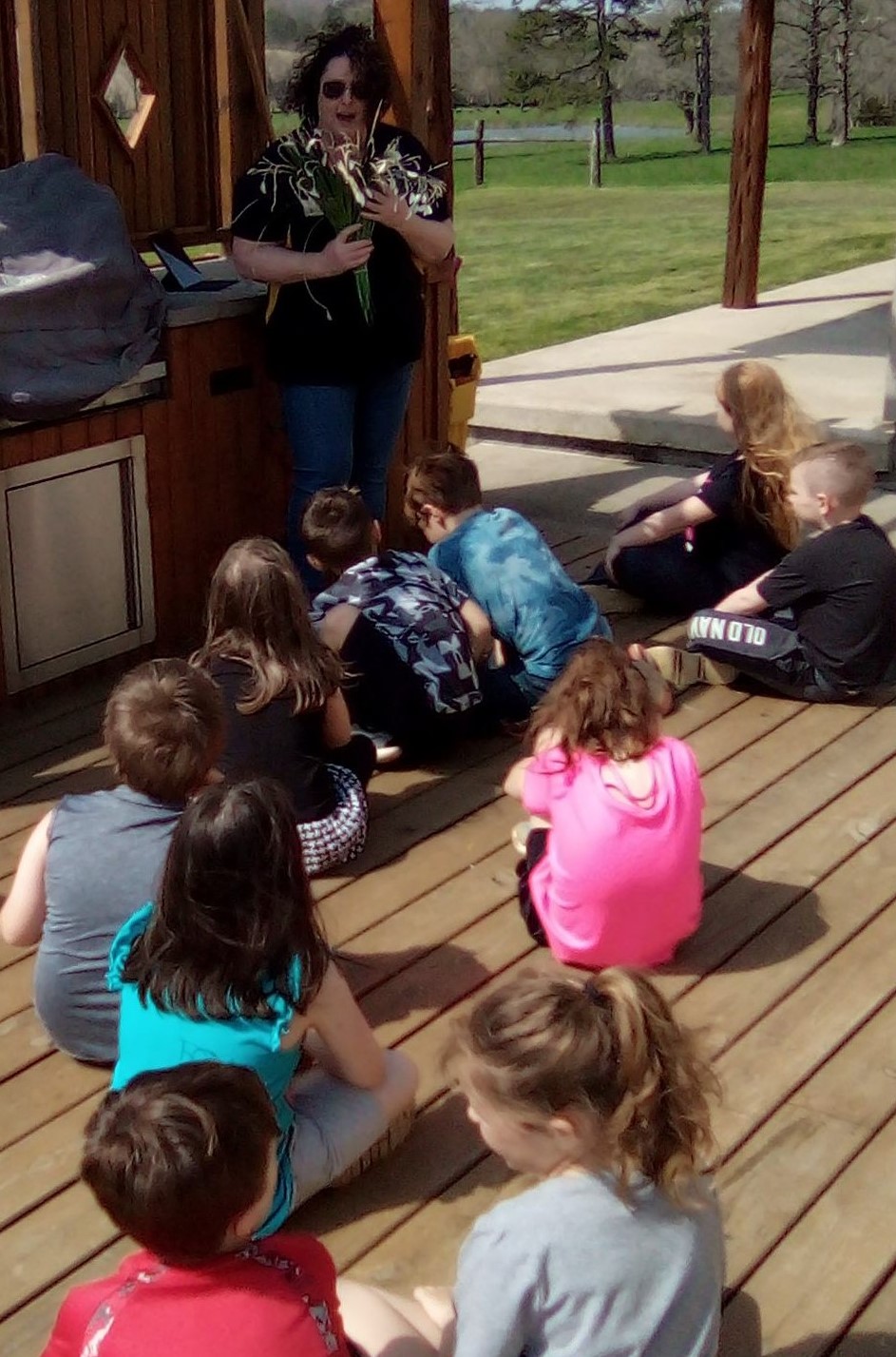 Group of 2nd graders at the quail station at the Ag Day 22