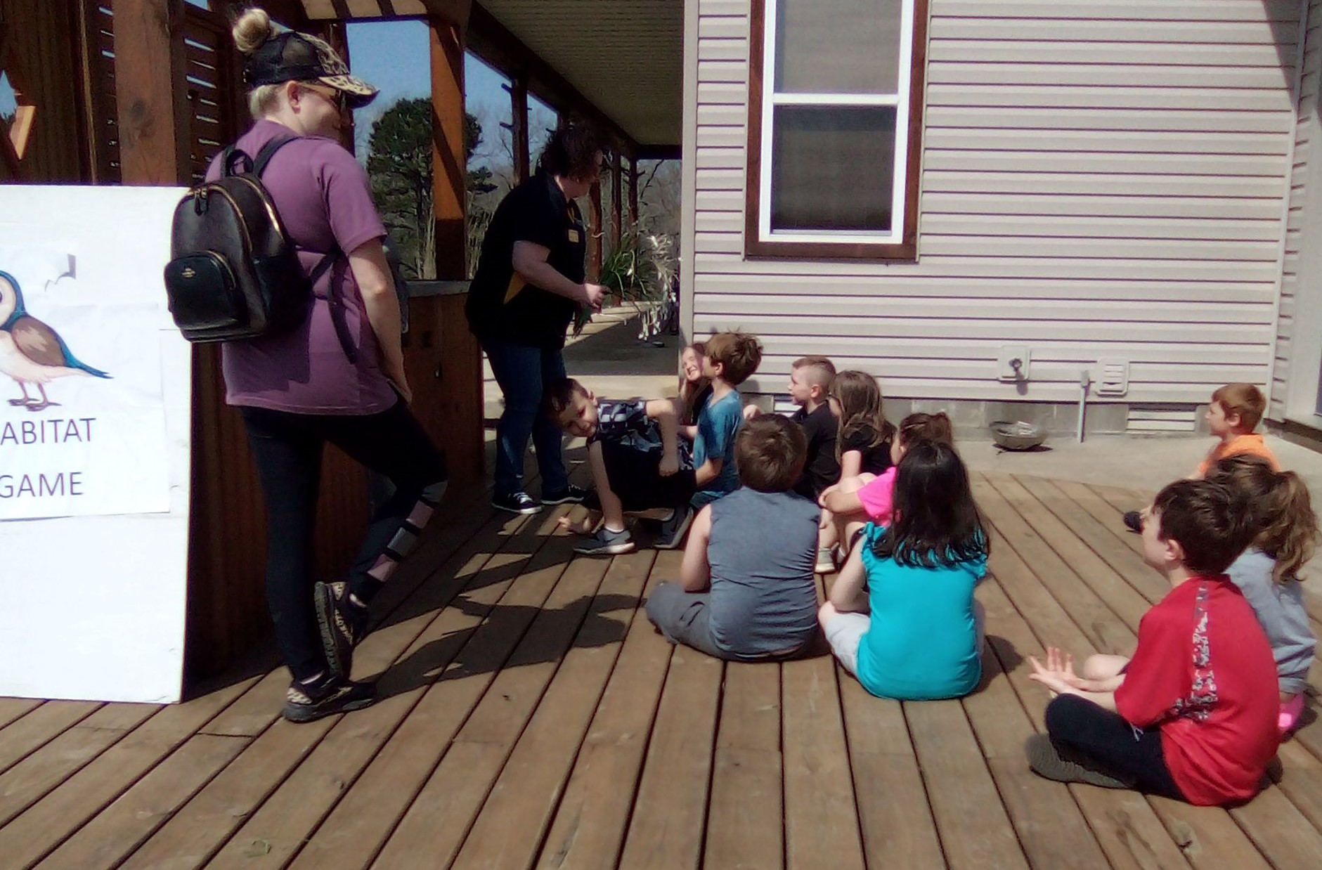 Group of 2nd graders at the quail station at the Ag Day 22