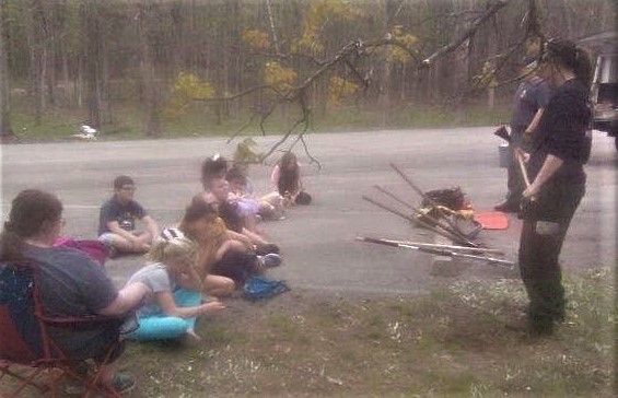 Students and presenters at the forest fire station at the Eco Day at the Piney Wood Rec Area